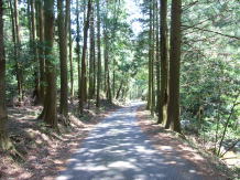 この先で、右手からの道と合流しました。このまま、まっすぐ行くと広沢寺温泉。合流した道が、日向山方向。