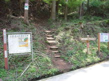 道は分岐しています。左は七沢温泉。「日向薬師40分」へ行きます。まっすぐに延びた木段を登っていくと日向山山頂に