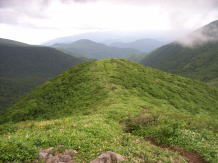 ガスが切れると、前方にこれから向かう稜線が見えます。天気が良ければ、気持ちの良い尾根歩きが出来そうです。