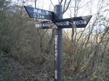 | 2006年11月22日 小木津山、羽黒山、神峰山、鞍掛山 (茨城県日立市) おぎつやま、はぐろさん、かみねやま、くらかけやま 小木津駅→小木津山自然公園→羽黒山→神峰山→蛇塚→鞍掛山→かみね公園→日立駅 上野7時発の特急スーパーひたち3号に乗車。日立駅で普通電車に乗り換えて8時41分に小木津駅に到着。 西口から県道に出て小木津山自然公園に向かっていきます。坂を登っていき鳥居があったので階段を登っていくと 小さな祠がありました。ところが先へ進む道がありません。なんと行き止まり。鳥居の下の道まで戻ります。 少し下っていくと、小木津山自然公園の入口がありました。公園に入り常磐自動車道の下をくぐると、紅葉が盛りです。 南展望台に向かいます。遊歩道を行き、南展望台に着きました。展望盤がありベンチがあります。 太平洋が眺められて朝日が眩しいです。展望台を下って公園中心部に位置する、いしくぼの滝へ。小さなな滝でした。 今度は北展望台に登ります。北展望台はベンチが1つだけあり、やはり太平洋が望めます。 つつじ園を通り、羽黒山への縦走路に入りました。丸太橋を渡り杉林を過ぎると、林道に出ました。 少し行くと、羽黒山への道標があり登って行きます。溝状にえぐれた道で、歩きづらいです。 落ち葉一杯の道や雑木林の中を行くと、石祠が置かれた分岐に着きました。右は羽黒山へ。左はかみね公園。 今は右へ行きますが、また後でここへ戻ってきます。少し行くと、滑りやすい粘土質の急坂を登ります。 平坦な道に変わり少し行くと標識が建つ羽黒山に到着。ピークという感じは無く、道標が無いと通り過ぎてしまいそうです。 展望はありません。羽黒山を下ります。左の木々の間から、神峰山が見えてきました。途中、北西方向の視界が開けて 綺麗な山並みが見えました。何度か小さな上り下りを繰り返して、山頂への分岐に着きました。まっすぐ行くと高鈴山へ。 神峰山山頂へ向かいます。急坂を登り小ピークを過ぎると、神峰神社がありました。少し登ると神峰山に到着です。 12時15分。奧に行くとベンチが2つあり、「日立大煙突記念碑」、気象観測所がありました。 ベンチの向こうには日立市街と太平洋が望めます。ここで昼食にしました。 13時丁度に出発です。石祠の置かれた分岐まで来た道を戻ります。羽黒山からの粘土質の下りが心配でしたが、 登りとは違う道を下ったようで、こちらの道は草に覆われた所もありましたが、滑りやすい道ではありませんでした。 分岐に戻り、かみね公園に向かいます。ここからは、軽い下りの歩きやすい道です。蛇塚(じゃづか)の石碑を過ぎ 道幅の広い道をゆっくりと下っていきます。道が細くなり金網のフェンスを過ぎると、谷側に柵のある階段を下り車道に 降りて道路を横断。ふたたび急な木段を登り、ハイキング道に戻りました。小さな鞍掛山の道標があったので、 登ります。中継アンテナが建つ所で、山頂標識はありませんでした。コースに戻り下っていくと、車道に出ました。 少し行くと、観覧車が見えてきて、かみねレジャーランドという遊園地です。さらに行くと、かみね公園です。 展望台があったので、登ります。下の方には日立の街と太平洋が見えます。山側を見ると神峰山が見えました。 日立の街へ下り国道、そして平和通りを歩いて、日立駅に到着しました。 日立駅17時1分のスーパーひたち50号に乗り帰宅。 行動中は、ほぼ快晴。夕方頃に薄曇りになってきました。 今日歩いた道は、日立アルプスと呼ばれている、一部分でした。 |