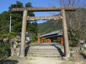 8分ほどで登りきり、小さな鳥居をくぐり磐山を削り付けられた道を行くと、祠の後ろに注連縄を巻いた御神体