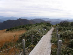 | 木道が続く | 中央が仙ノ倉山 | 最後の登り | ||
