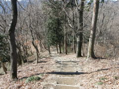 | 筑坂峠 | 急な木段を登る | 虎ヶ丘城址 | ||