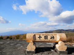 | 2012年12月20日 岩戸山、十国峠(日金山)(静岡県熱海市) いわとやま、じゅっこくとうげ(ひがねさん) 湯河原駅→千歳橋→七尾峠→岩戸観音→岩戸山→東光寺→十国峠→石仏の道→来宮神社→熱海駅 5度目の十国峠へ。今まで1度も富士山を見る事が出来てません。 東京駅7時24分発の東海道線に乗車。晴れていますが、西の方角に雲が出ていて、富士山の姿が見えないまま、 9時15分に湯河原駅に到着。 9時24分に出発。駅前の階段を下り、真っ直ぐに土肥の街を行きます。千歳川に突き当たり左へ川に沿った道を行きます。 国道135号に出て、右折して千歳橋を渡ると、右に潮音寺の石柱があり、結構急な坂道を登って行きます。 登って行くと、右下に湯河原の街が広がります。この道は みかん畑の農道で、みかんが転がっています。 高度が上がると、周りは みかん畑。眼下に相模湾が広がり、初島、その奥に大島が見えてきます。 見返し地蔵を右に見て、電波反射板を過ぎると、山道になります。林の中を行き、緩く登って行くと水道施設を通過。 平坦で広い道になり、左にフェンスのある道を抜けて、突き当たりを右に行くと、ペンションがあり広い舗装道路に出ます。 この辺りが七尾峠のようです。右に向かい、すぐに左折。沖電気健保前バス停のそばに、岩戸山ハイキングコースの案内があります。 車道の坂道を上って行きます。この辺りは、企業の保養所があります。 車止めを越えて、しばらく行くと階段があり、岩戸山への登山口です。階段を上がり山道に入ります。 緩い傾斜の広い道で歩きやすいです。岩戸山山頂・岩戸観音分岐を岩戸観音へ向かいます。 細い登山道で、落ち葉があり、熊笹が登山道に覆いかぶさっていて歩き辛いです。落合橋からの道と合流すると、岩戸観音。 岩壁をくり抜いて、岩戸観音が祀られています。ここからは、ロープの張られた急登です。 登り切ると鉄塔下。穏やかな尾根道を行くと、岩戸山に到着。11時45分。山頂からは、相模湾が広がっています。 ベンチとテーブルが一対だけ置かれていますが、幸い空いていたので昼食にしました。 いつものように、乾燥野菜と溶き卵を入れたインスタント塩ラーメンと おにぎりです。 50分ほど休憩して出発。いつもは右の山頂への近道を歩いていたので、今日は少し下って行く道を行きます。 横木の階段を下り、背丈以上の笹に覆われた道を行くと、近道からと合流。 起伏の少ない、歩きやすい尾根道を行くと、開けた草地に出て分岐。左は帰りに下山で使います。 まずは右の道を行きます。末代上人宝筺印塔を過ぎて、湯河原からの道と合流。小さな木橋を渡ると、東光寺の境内です。 舗装された参道を登り切ると、左に姫ノ沢公園。右の坂道を登ると、源実朝の歌碑があり、広い草原に出ます。 先に見える、ケーブルカーの十国峠駅に向かっていきます。最後の階段を上がり、13時23分に十国峠に到着。 結構晴れているのですが、富士山の方向に雲が広がっていて、またしても富士山が見えません。 愛鷹連峰は見えるのに、その右の富士山が見えないです。ついに5連敗。 ケーブルカーの十国峠駅で、甘酒とお団子で休憩。 さぁ、下山です。東光寺に戻り、尾根道を行き、開けた草地から南東へ海に向かって、どんどん下って行きます。 海には初島、大島が見えます。この道は石仏の道で、石仏と町目石が続いています。 車道に出て、右に折れて すぐに山道に入ります。次に車道に出ると笹良ヶ台団地で、ここからは車道歩きです。 道標があり石仏の道が続いています。一町目石を過ぎて、右の道に入る所に、小さな水明神社。石仏の道の起点です。 急な坂道を下って行きます。下り切ると来宮神社。JRのガードをくぐり左へ行き、15時45分に熱海駅に到着しました。 熱海駅16時ちょうどの快速アクティーに乗り帰宅。 天気は、晴れ 時々 曇り。 5度目の十国峠でしたが、またしても富士山を見る事ができず、5連敗。 十国峠から富士山を見てみたいです。 ※「ヤマレコ」 http://www.yamareco.com/modules/yamareco/detail-253844.html |