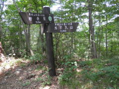 | 2014年8月1日 岩船山、馬不入山、晃石山、太平山 (栃木県大平町) いわふねさん、うまいらずさん、てるいしさん、おおひらさん 岩舟駅→岩船山→馬不入山→桜峠→晃石山→太平山→謙信平→下皆川登山口→新大平下駅 真夏の低山ハイクに出かけます。東武線に乗り、栃木駅でJR両毛線に乗り換えて、8時51分に岩舟駅に到着。 ホームの向こうに三毳山が見えます。駅正面の道から、左に折れて岩船山に向かいます。 「岩船山」の石柱から参道に入ると、すぐに約600段の石段が始まりました。登り切ると高勝寺の境内です。 さらに石段を登って行くと、岩船山の山頂ですが、以前行った事があるし今日は暑いので、ここまで。 山門横の「太平山」の道標から、舗装された裏参道を下って行きます。少し下ると、東日本大震災の崩落個所が、すぐ間近です。 裏参道登り口から道なりに行き、関東ふれあいの道に合流して左に行きます。 道の左には溜池が広がっています。鷲神社の鳥居を右に見て通り過ぎると、左に馬不入山への道標があり山道に入ります。 「関東ふれあいの道」の石柱があり、横木の階段を登ると車道に飛び出し横断しますが、 この車道、通行量が多くスピードを出しているので、かなり危険です。車道を横断すると、すぐに横木の長い階段です。 登り切ると送電線鉄塔下で、右に折れて横木の階段、露岩の登りで結構急です。汗が噴き出して、Tシャツ、ズボンが びっしょりです。 少し下りになり、正面に馬不入山が見えてきました。そして急登を登り切ると、馬不入山に到着。小休止します。 ここからは歩きやすい尾根道を行きます。11時09分に桜峠に到着。東屋とベンチがたくさんあります。 ベンチに座って昼食です。今日は簡単にコンビニで買ったお稲荷さん5個。北西側が開けていて、諏訪岳が尖っています。 45分ほど休んで出発です。手摺の付いた登りが終わると青入山。この先、小さな上り下りを繰り返します。 「晃石山0.2km」の道標は右を指していますが、右は晃石神社への道なので、道標の指していない道を直進します。 晃石山への直登道で、木の根の露出した急登を数分で、祠と三角点のある晃石山山頂に着きます。 今日は大気が霞んでいて、すぐそばの三毳山さえも霞んでいます。反対側の日光方面の山並みも見えません。 下山も神社を通らない道がありますが、鳥居をくぐって下り、晃石神社へ。 尾根道を行きます。横木の階段を下ると。ベンチのある ぐみの木峠。すぐに林道を横断。 分岐があり、右は太平山神社。太平山の山頂は、左の富士浅間神社方向へ。木の根の露出した急登で、富士浅間神社。 神社の裏に太平山の山頂標識があります。尾根道を下って行き、太平山神社奥宮を過ぎて、太平山神社の境内に降り立ちました。 本殿正面の階段を下ると随神門。車道を右に少し行くと、土産物屋が並ぶ謙信平。 前回来た時に老朽化で立ち入り禁止だった展望台が、作り替えられていました。以前の半分くらいの大きさです。 フィールドアスレチックのコースを抜けると、右手にそば屋があり、この裏から山道が続いています。 車道を横切り、石段から階段に変わり、鳥居が2つある富士塚。石段を下ると下皆川登山口。 左に行き車道に出ました。JR両毛線の踏切を渡ります。この辺りにはぶどう園があり、ぶどう棚には、たわわに実っていました。 14時40分に東武線新大平下駅に到着。14時46分の電車に乗車。南栗橋で急行に乗り換えて帰宅。 天気は晴れ。おもいっきり暑かったです。 馬不入山に着くまでは、ものすごい汗でしたが、尾根道に出てからは体が慣れたようで、なんとか歩き通せました。 ※「ヤマレコ」 http://www.yamareco.com/modules/yamareco/detail-487780.html |