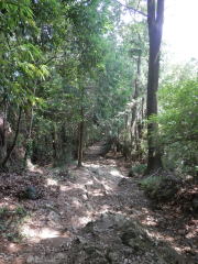 | 青入山(389.5m) | 直進して、晃石山の直登道へ | 木の根の露出した急登 | ||