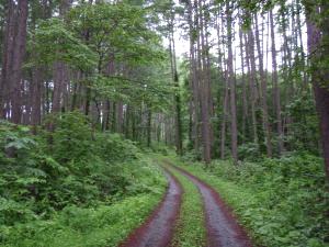 雨に濡れた階段を注意しながら下って行きます。山道が終わり一ノ瀬。休憩所は通過して林道を行きます。13時15分に大清水に下山完了。