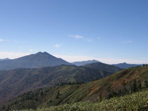 少し登り振り返ると、今回初めて燧ヶ岳が見えました。そして右に、上州武尊山、至仏山、笠ヶ岳と尾瀬の山を確認。今日は素晴らしい眺めです。
