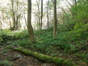 あれっ、大津岐峠に着いてしまいました。なんと、巨大な大津岐峠の道標が、倒れていました。道標の根元が腐って倒れたようです。いつ倒れたのでしょうか?