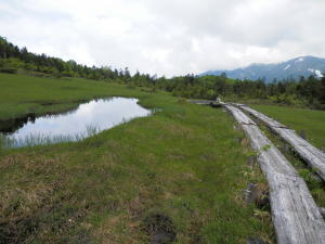| 逆さ燧の池塘(燧は雲の中) | 上ノ大堀川橋へ | 中田代へ | ||