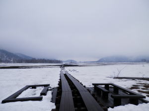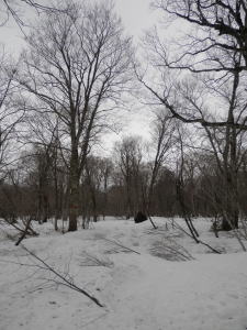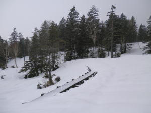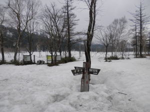 | 尾瀬 2014年5月9日、10日 5月10日 長蔵小屋→沼尻→白砂峠→見晴→竜宮十字路→牛首→山ノ鼻→鳩待峠 3時50分に起床。どんよりとした雲が広がっていて、時々強風が吹いています。 いつものように談話室のポットのお湯でコーヒーを入れて、部屋のこたつで手持ちのパンで簡単な朝食を済ませます。 5時10分に出発。途中で天気が回復する事を期待します。燧ヶ岳は全く見えません。 尾瀬ヶ原に向けて出発です。大江川を渡り、林内の雪道を行きます。枝に結び付けられたリボンを見逃さないように注意します。 長英新道分岐を過ぎて浅湖湿原を通過し、再び林内へ。ブルーシートに覆われた沼尻休憩所が見えてきました。軒先で小休止。 天気は回復しないどころか、ちょっと霧雨が降ってきました。白砂田代も一面雪で覆われていて、池塘は見えません。 雪の斜面を一登りして白砂峠を越えます。雪の山腹道を慎重に進みます。時々、登山道、木道が出てくるようになってきました。 イヨドマリ沢をまたぐ木道は、この時期中途半端に出てるので、特に注意します。 林内の雪道になり、見晴新道分岐を過ぎて、7時51分に見晴に到着しました。 今年も桧枝岐小屋に入り、おしるこを頼んで温まりました。ご主人(ひげくまさん)には会えませんでした。 さぁ、尾瀬ヶ原へ。相変わらず霧雨が降り続いています。至仏山も燧ヶ岳も見えません。下田代の木道は出ていません。 六兵衛掘の木道は出ています。ウッドデッキも出ています。天気が良ければ休憩したいですが、今日は通過します。 竜宮沼尻川橋を渡り、龍宮小屋を通過。中田代の木道は大部分出ています。木道下には水芭蕉が咲き出しています。 下ノ大堀の水芭蕉のポイントでは、白い苞が見えています。牛首付近は、雪解けしていてシャベット状になっている所があります。 上ノ大堀川橋が近づいてくると、今日は初めて人の姿を確認。逆さ燧のポイントでも燧ヶ岳は見えません。 山ノ鼻に近づいてきて、木道が雪に埋もれてきました。原の川上川橋を渡り山ノ鼻湿原へ。この辺りも木道は出ていません。 山の鼻小屋が見えてきましたが、カーテンが閉まってる様子。小屋に着くとやはり営業していません??? お昼を食べるつもりだったのに、どうしたのでしょうか? しかたが無いので至仏山荘に入り昼食にしました。食後に研究見本園を少し見て、下山開始です。 山ノ川上川橋を渡り、川上川に沿って行きますが、木道は出ていません。テンマ沢は雪解けしてる所があり、水芭蕉が咲き始めています。 川上川を離れて、雪道を登っていきます。雪は柔らかいのでアイゼンは要りません。木道、階段は、ほとんど出ていません。 11時55分に鳩待峠に到着しました。荷物を整理していると、だんだんと雲が切れてきた青空が見えてきました。 至仏山が初めて姿を現しました。バスに乗る直前には、すっかり青空になりました。 12時45分のバスで戸倉に。戸倉13時12分のバスで上毛高原駅へ。15時22分の上越新幹線Maxたにがわ418号に乗り帰宅。 今日の天気は、行動中は、小雨 のち 曇り。 午後からは天気は回復して、快晴になったようです。 ※「ヤマレコ」 http://www.yamareco.com/modules/yamareco/detail-445679.html |