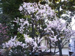 ちょっと、のぞいて見たらピンクの綺麗な花が咲いています。あんずの花でした。
